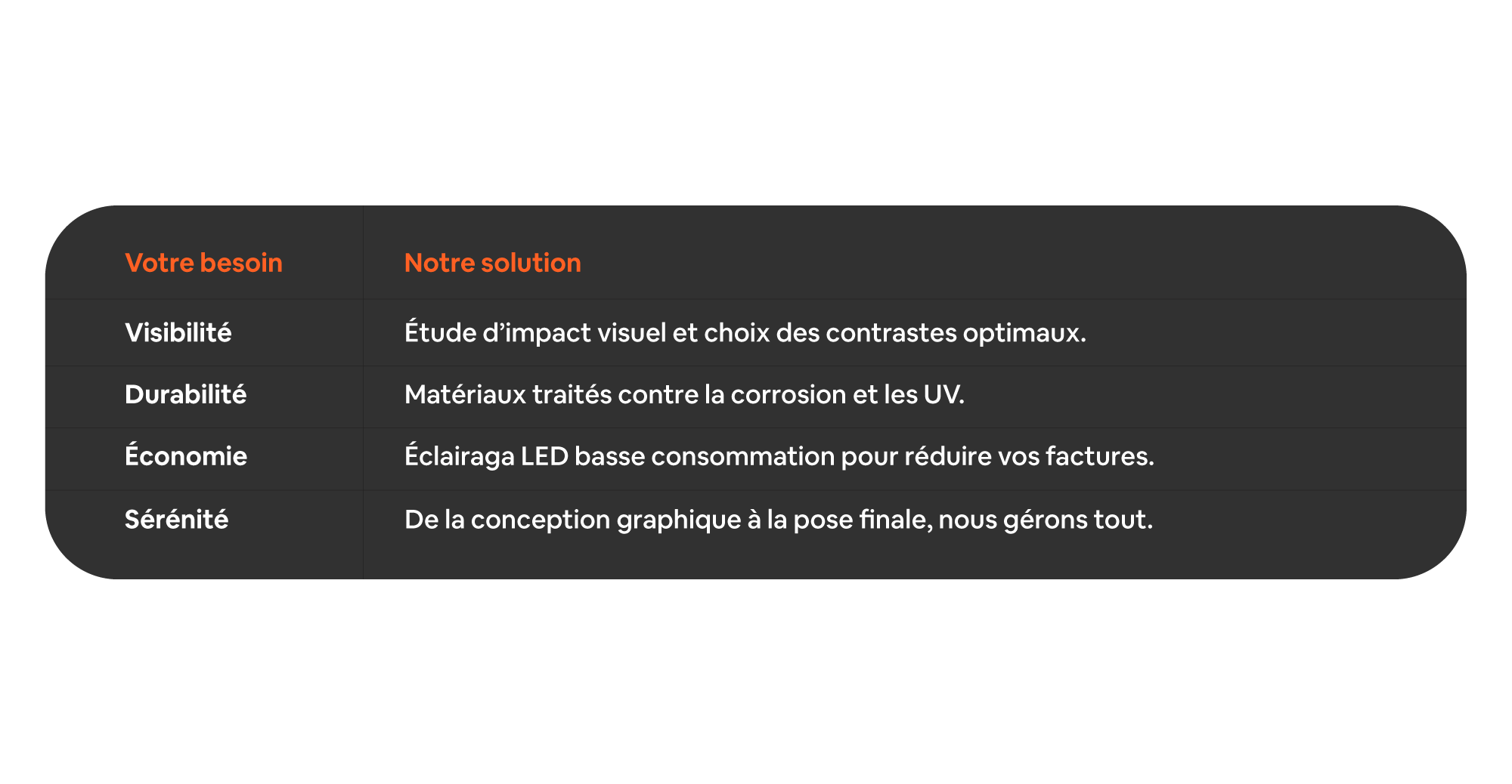 Faites de votre façade un véritable atout commercial. Contactez-nous pour définir ensemble l'enseigne qui fera briller votre entreprise.